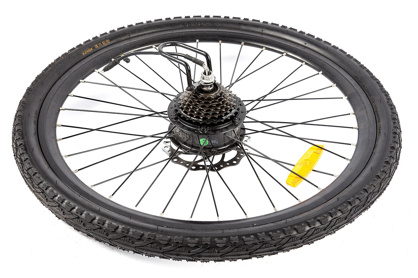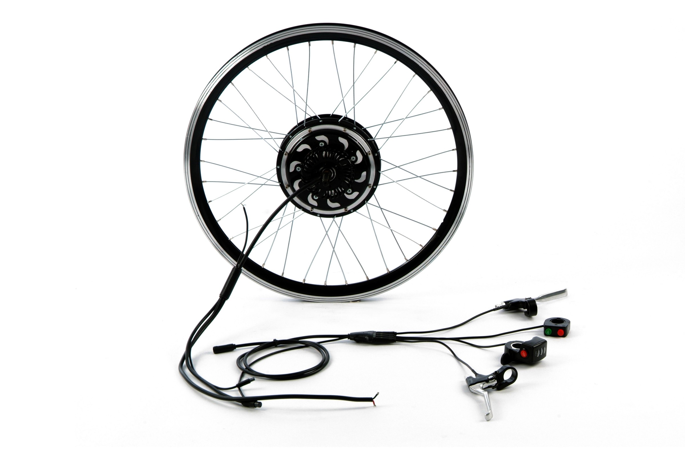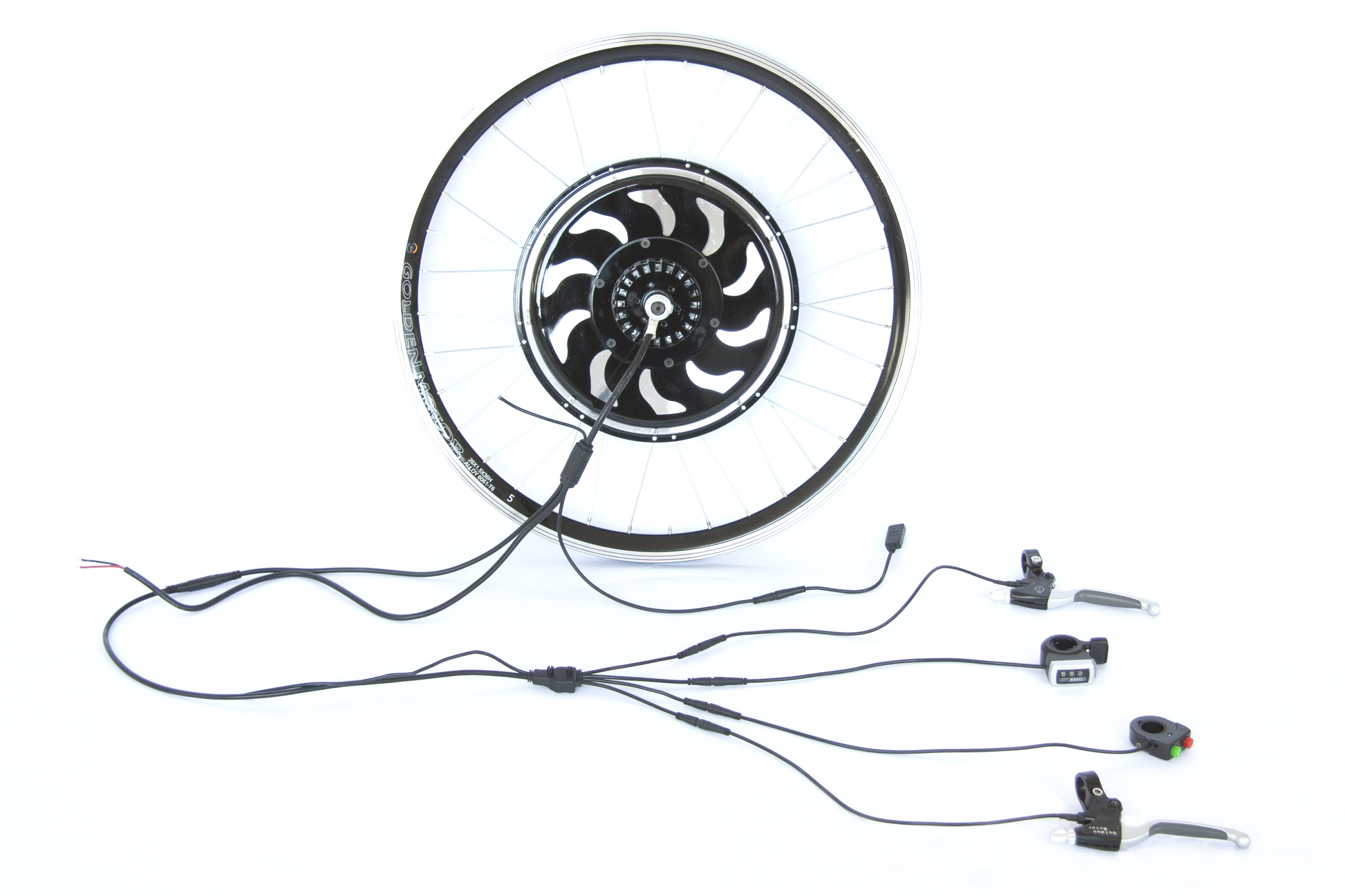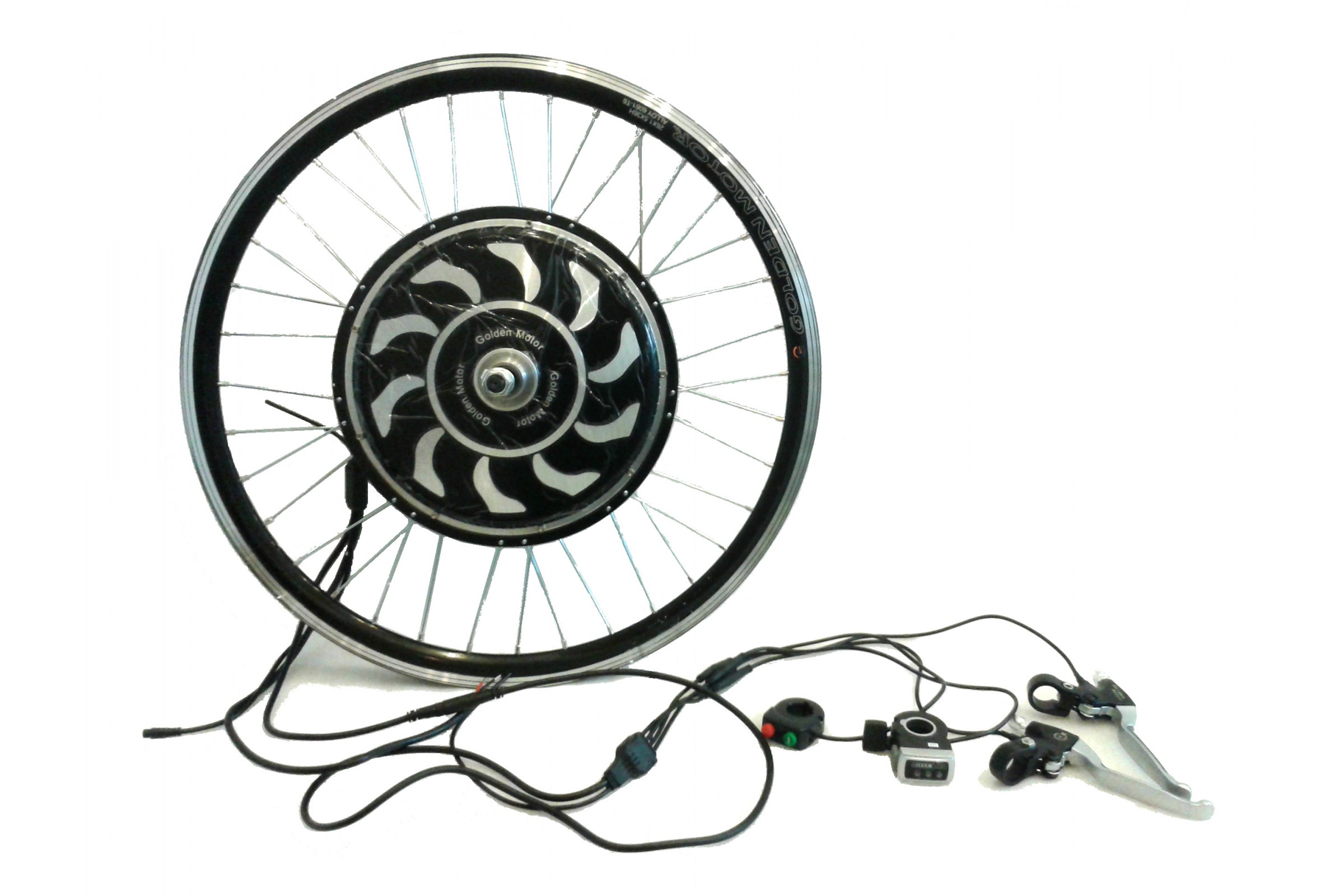 Комплект для апгрейда обычного велосипеда до электровелосипеда. Максимальная скорость 45 км/ч (на батарее 48В), без кручения педалей. Дальность пробега зависит от ёмкости аккумулятора, составляя в среднем 20-40 км, без педалей.