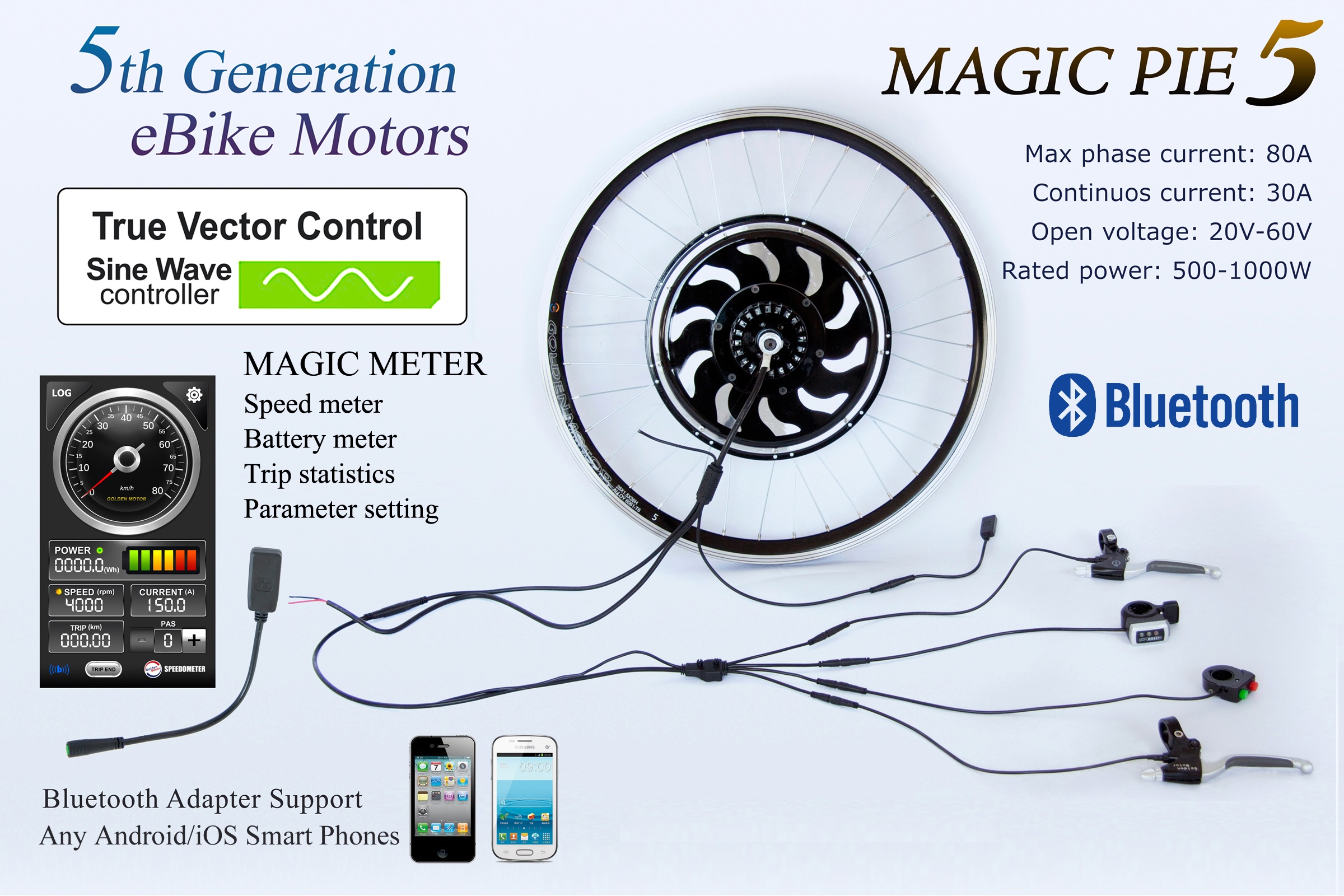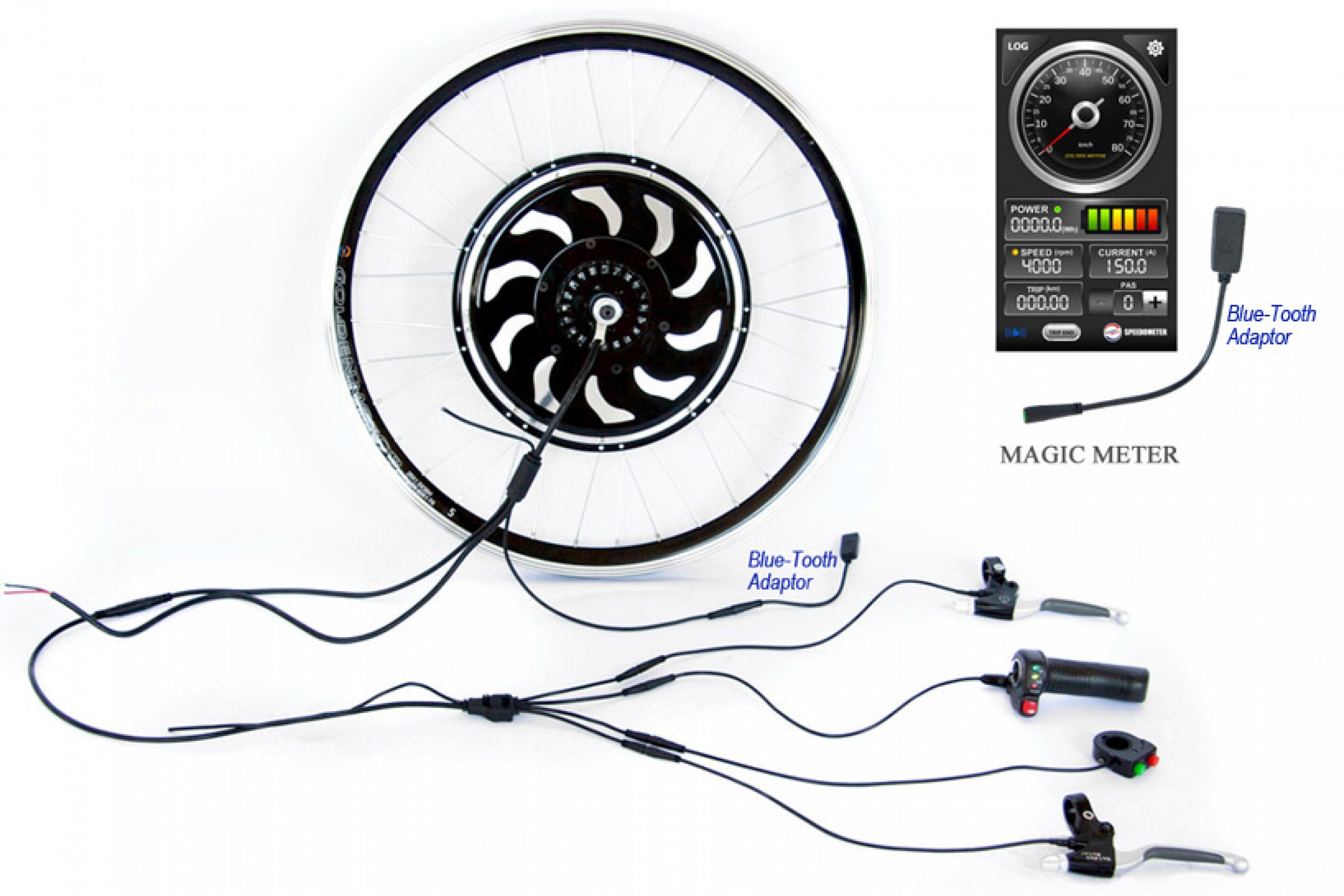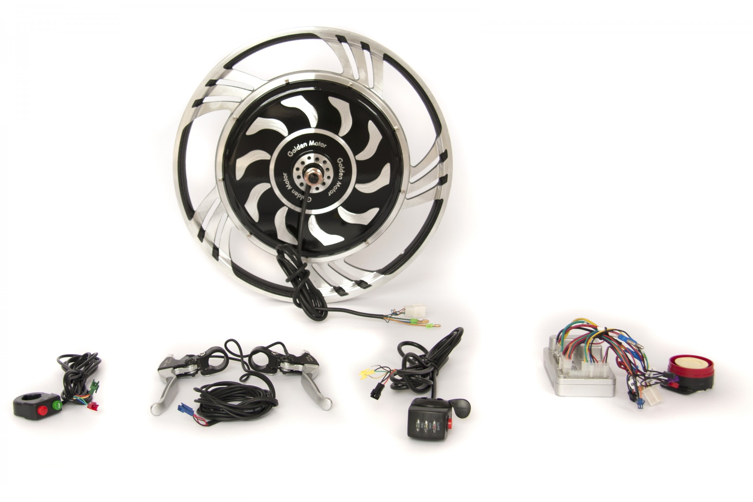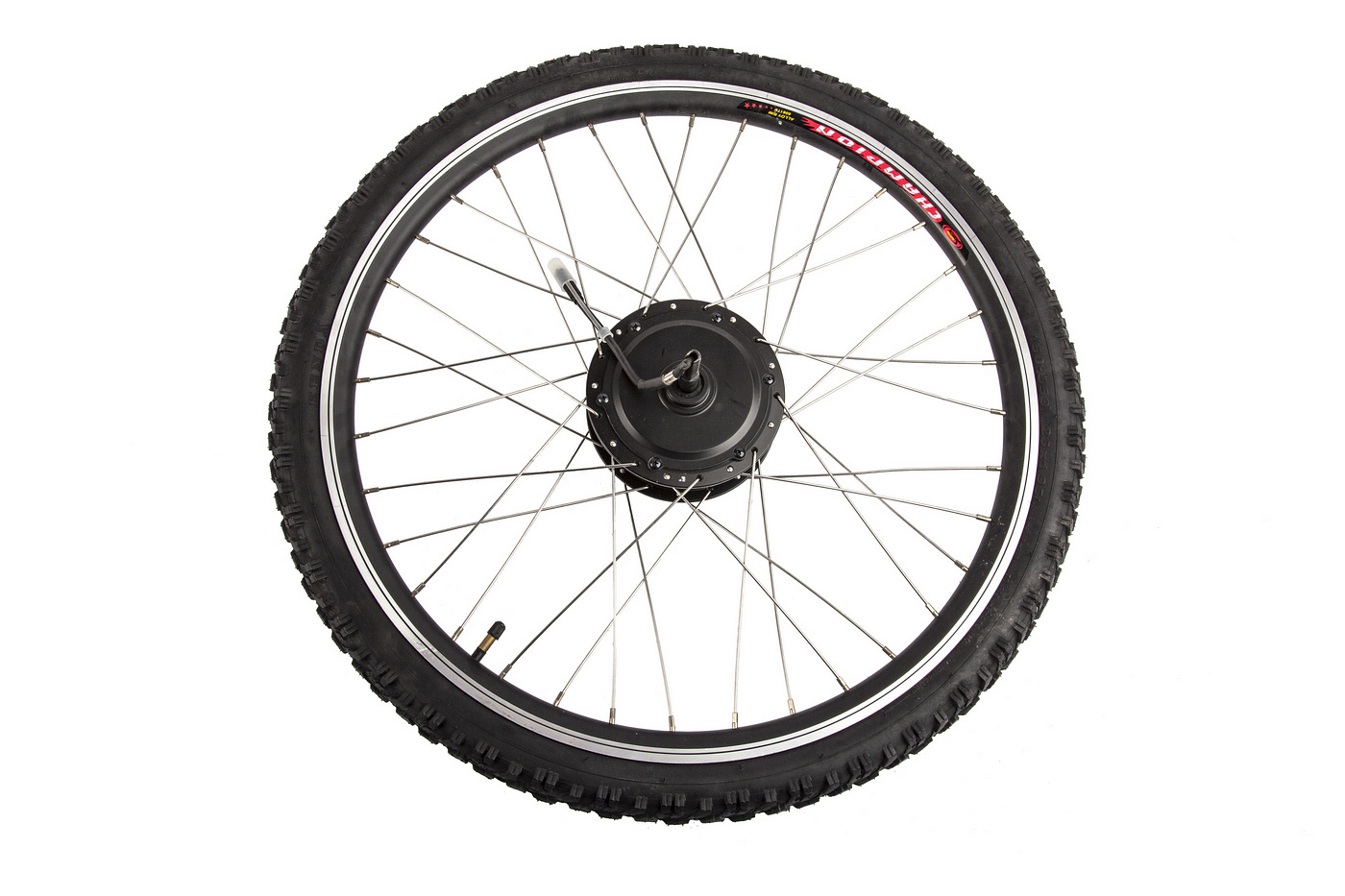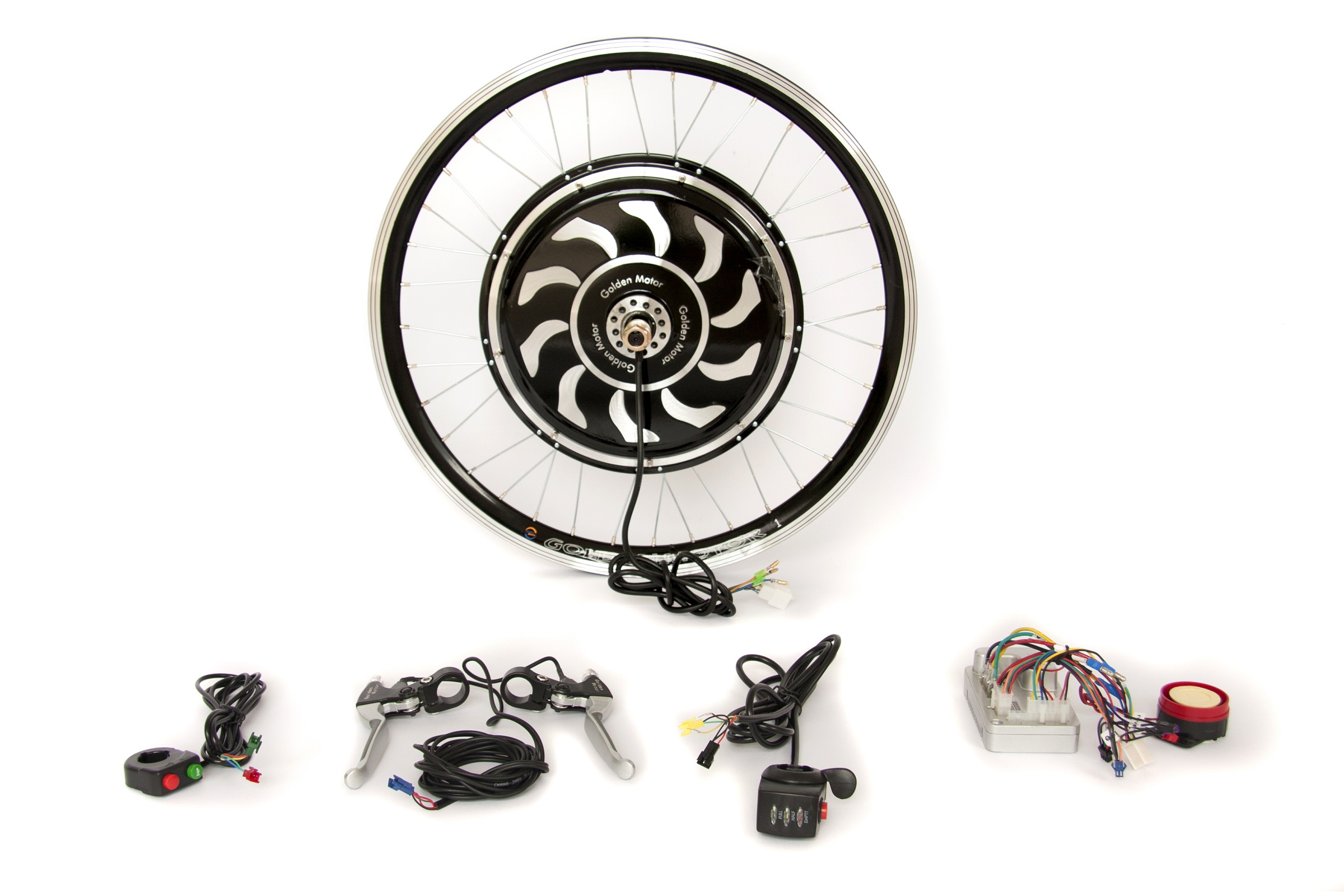 Комплект для апгрейда обычного велосипеда до электровелосипеда. Максимальная скорость 45 км/ч (на батарее 48В), без кручения педалей. Дальность пробега зависит от ёмкости аккумулятора, составляя в среднем 20-40 км, без педалей.